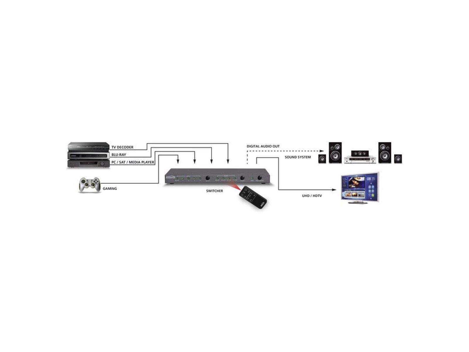 HDMI Auto Switcher met Digitale Audio en 4K60 UHD ondersteuning - 4 in / 1 uit