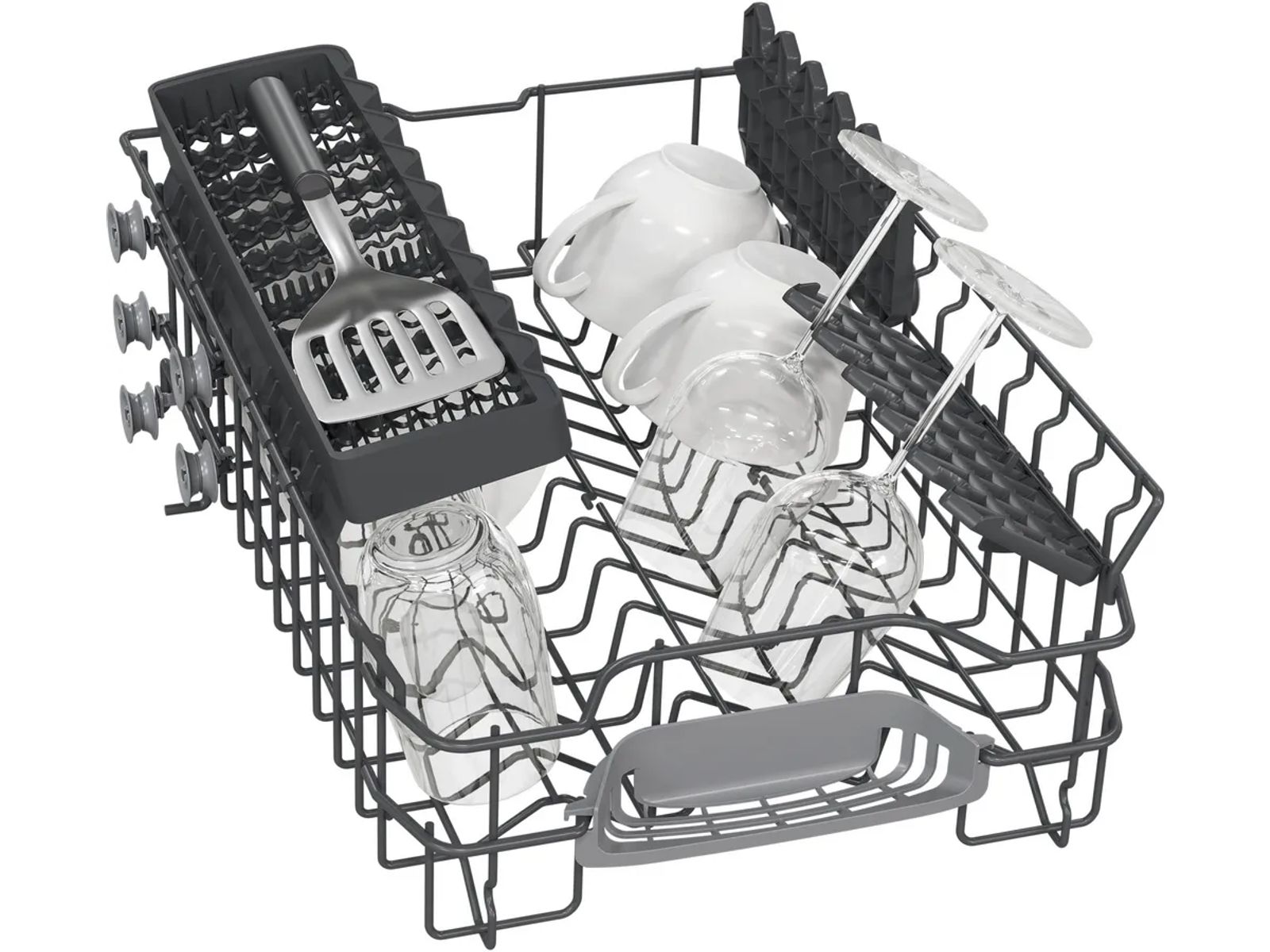 Beschik over meer flexibiliteit bij het inruimen met een in hoogte verstelbare bovenkorf. Dankzij deze mogelijkheid kun je verschillende soorten vaat altijd gemakkelijk kwijt. Wil je bovenin hoge glazen zetten? Of juist grote borden onderin? Dat kan allemaal als je de hoogte van de bovenkorf verstelt. Dat is pas flexibel inruimen.