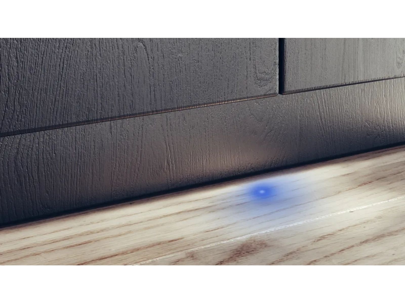 infoLight projecteert een blauwe stip op de keukenvloer zolang het afwasprogramma bezig is.